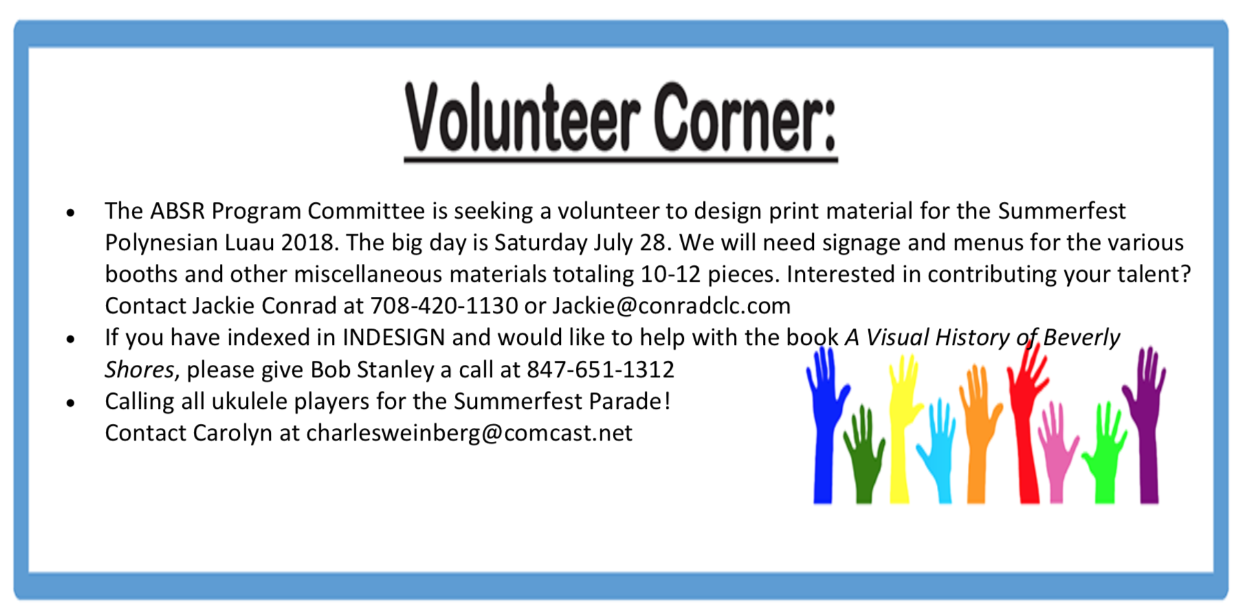 The Association of Beverly Shores Residents (ABSR) provides the information on this site for your information. The individual authors are solely responsible for the content of the newsletter, various articles, electronic mails, and forum postings. ABSR does not make any representations about the veracity of this information. The documents on this website were current when posted, but may have changed since then and should not be relied on. When ABSR becomes aware that posted information is no longer up to date, we may remove the information from the site or post a notice indicating that the information is out of date, either option to be at the ABSR’s discretion.