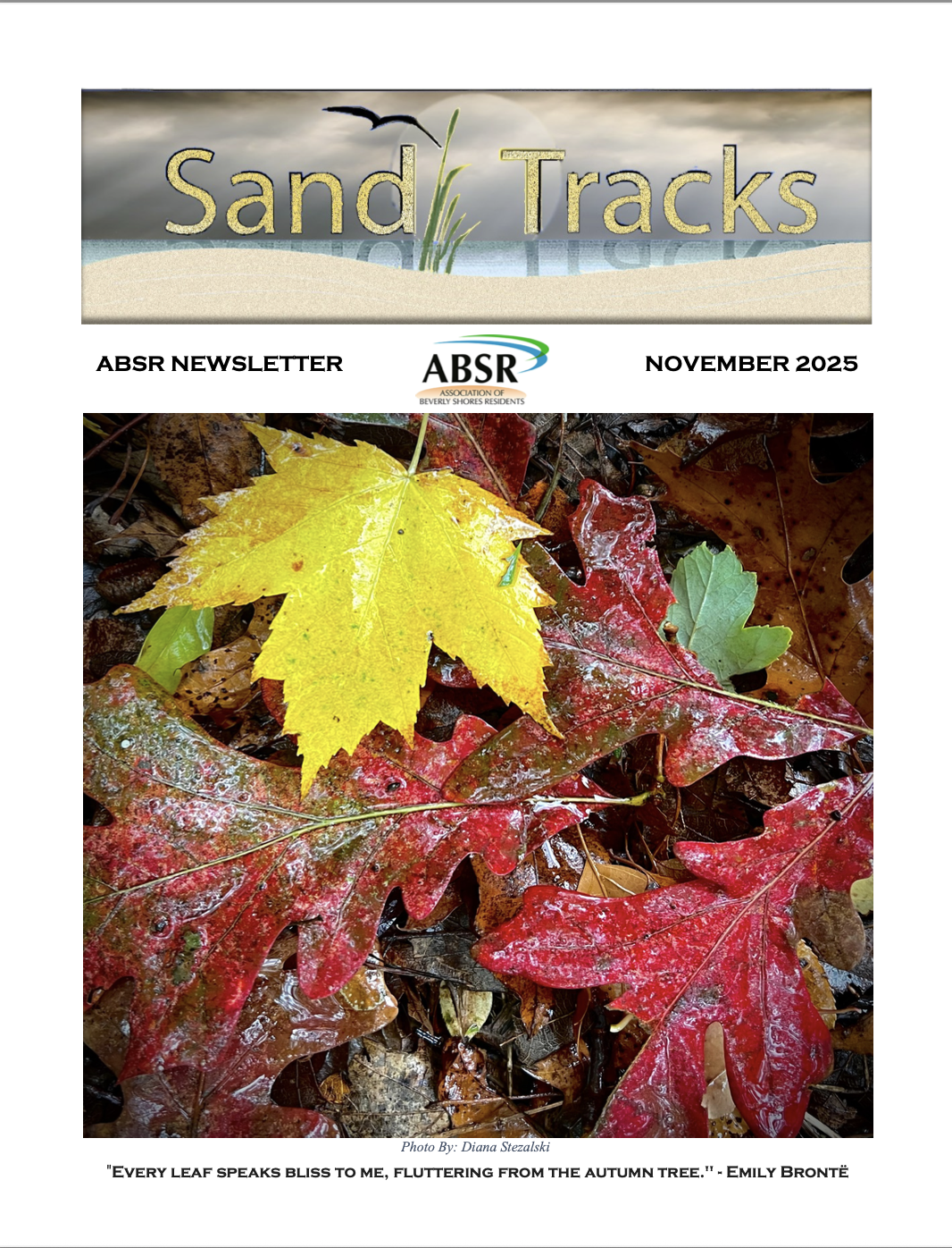 The Association of Beverly Shores Residents (ABSR) provides the information on this site for your information. The individual authors are solely responsible for the content of the newsletter, various articles, electronic mails, and forum postings. ABSR does not make any representations about the veracity of this information. The documents on this website were current when posted, but may have changed since then and should not be relied on. When ABSR becomes aware that posted information is no longer up to date, we may remove the information from the site or post a notice indicating that the information is out of date, either option to be at the ABSR’s discretion.